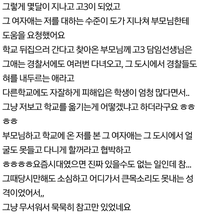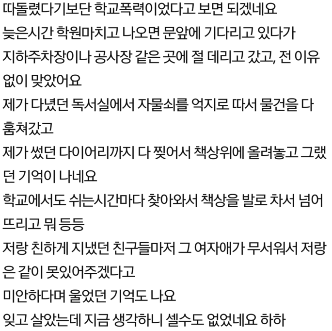 학창시절 저를 왕따 시킨 애가 죽었어요